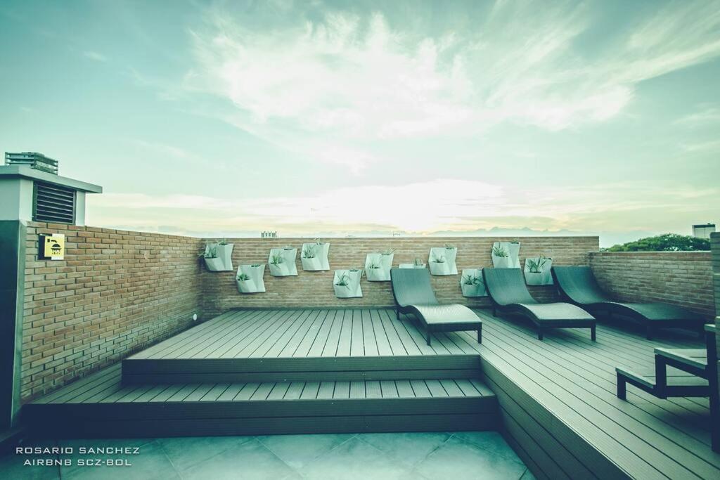 Set in Santa Cruz de la Sierra, Hermoso y moderno monoambiente en Santa Cruz provides accommodation with a rooftop pool, a balcony and city views. It is located 1.3 km from Gabriel Rene Moreno Autonomous University and features a lift. The apartment offers a sun terrace, a 24-hour front desk, and free WiFi is available throughout the property.